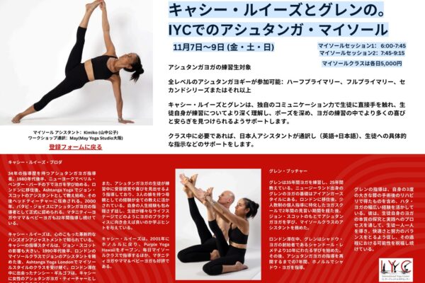 ご自身のシャPurple Yoga Hawaiiで多くの生徒に伝えながら、日本へ何度も足を運び指導さ れてきました。 彼女の勤勉さ、キュートさ、的確でとても温かいアジャスト、母として、女性として、また長年の 練習生としてのバランスの良さは誰もが尊敬できるところでしょう。 ぜひ彼女に会って、アシュタンガヨガを学んでみて下さい!