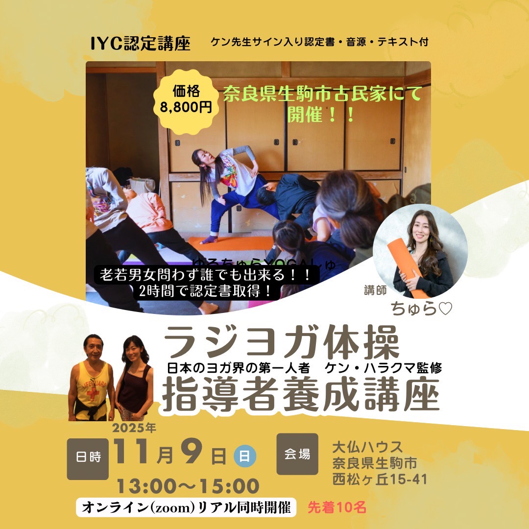 【奈良 & ZOOM】ラジヨガ体操 指導者養成講座 開催 決定!講師:IYCラジヨガ体操認定講師 ちゅら♡