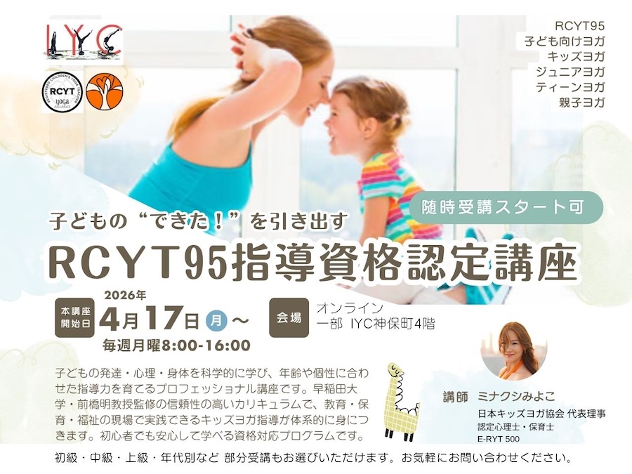 【神保町 & ZOOM】第8期 全米ヨガアライアンス認定指導者講座RCYT95時間:2026年4月スタート!参加日時自由選択制