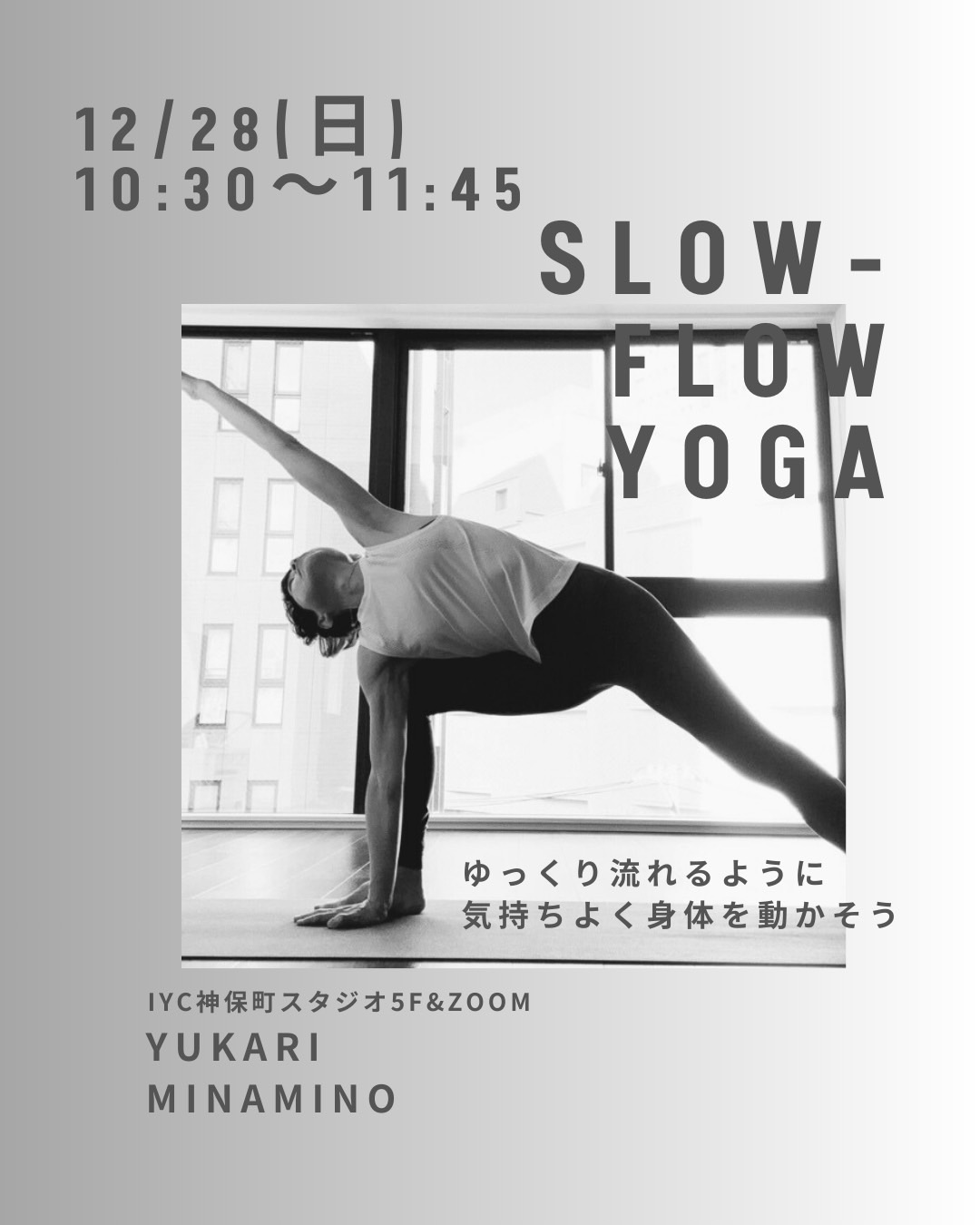 【神保町&ZOOM】SLOW‐FLOW YOGA クラス12/28(日)@IYC神保町スタジオ5階