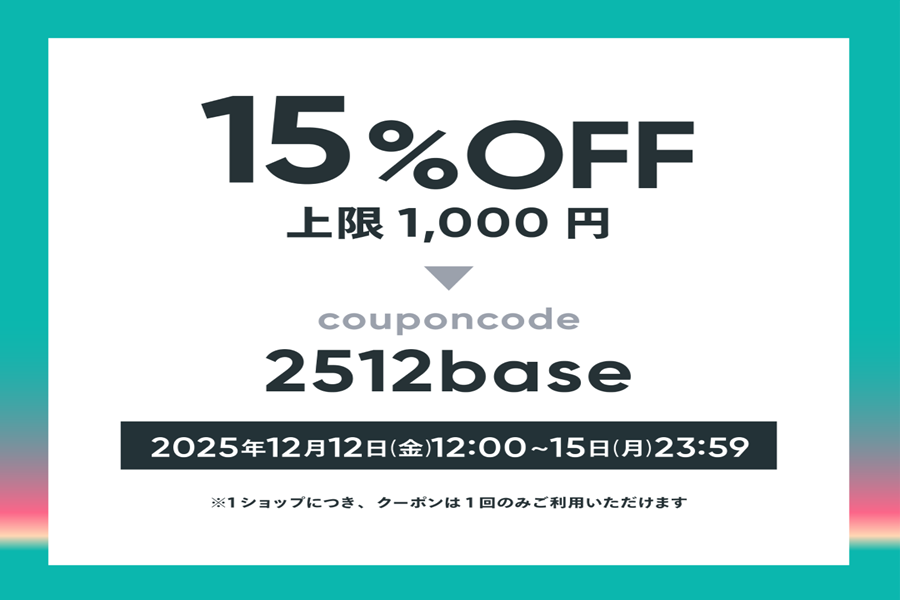 BASE13周年大感謝祭で15%OFF(割引上限1,000円)クーポンが配布されます!