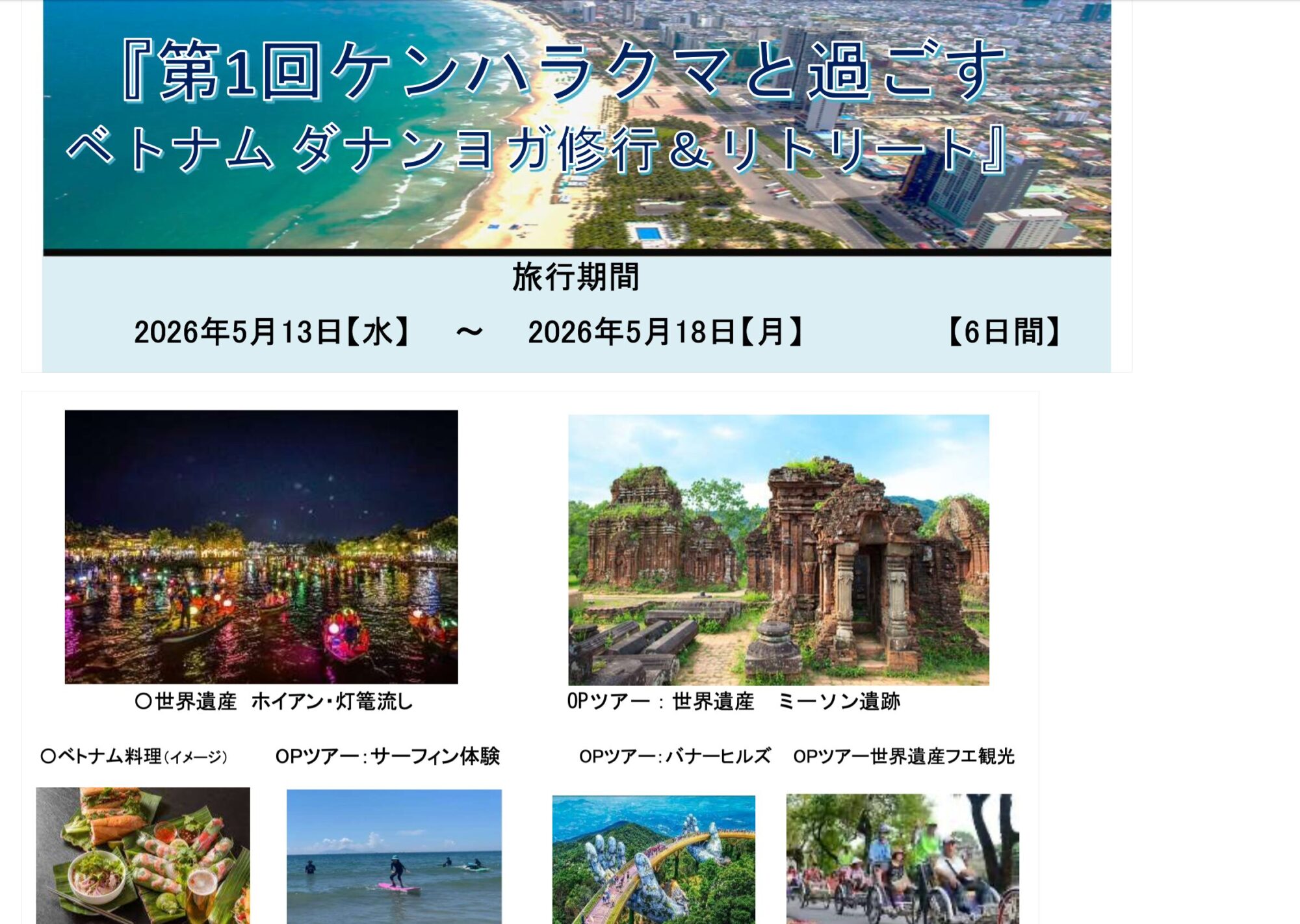 【ベトナム・ダナン】ベトナムのハワイと言われるダナン初開催❣️ ケンハラクマと過ごすヨガ修行とベトナムリトリート開催決定‼️