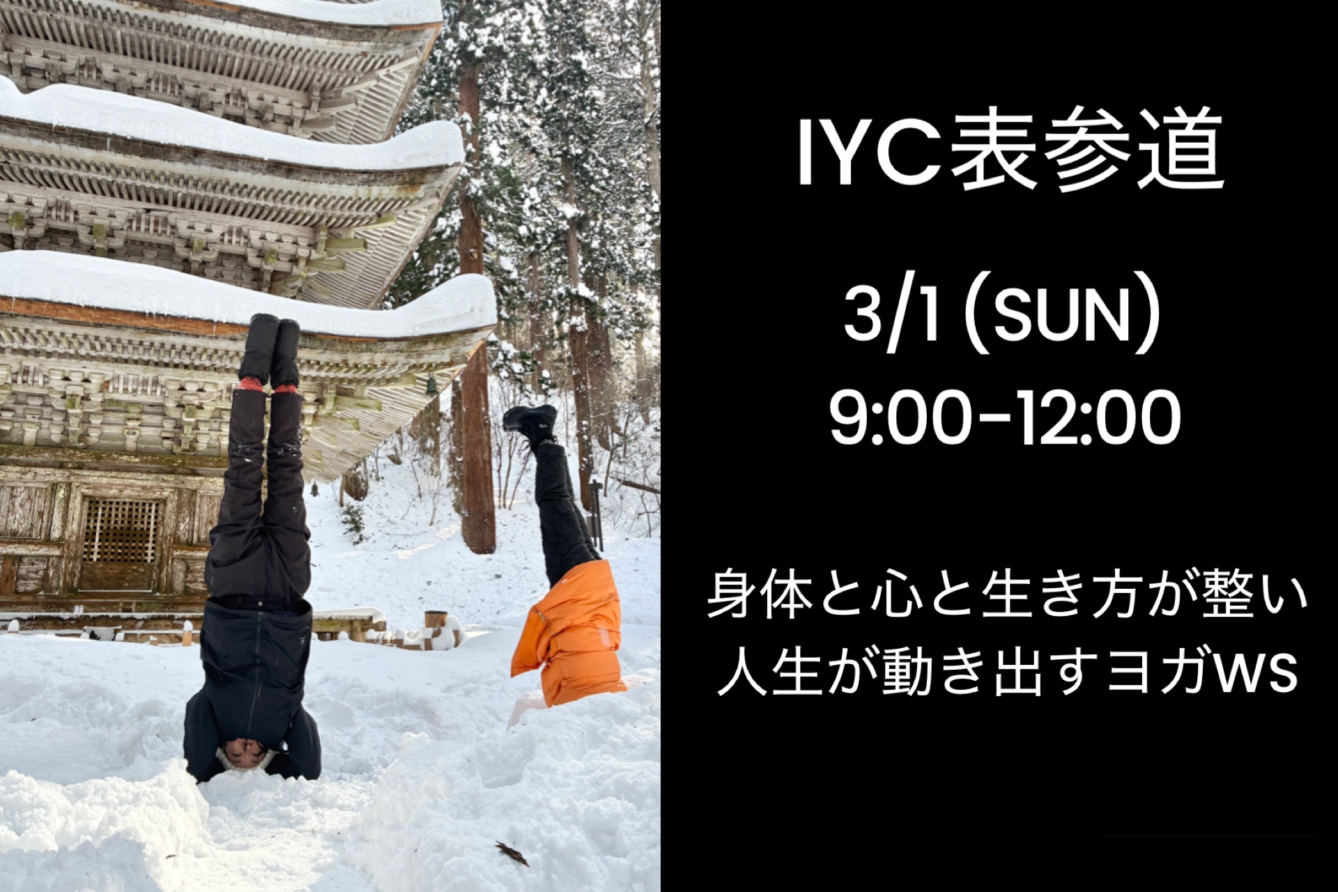 IYCチケット2枚、またはドロップイン6600円