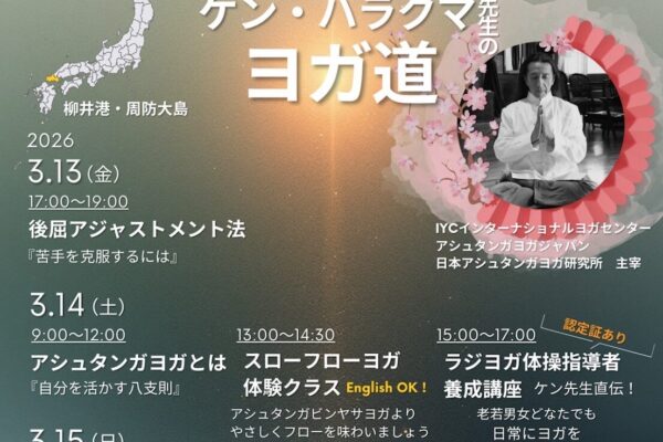 日本におけるアシュタンガヨガの第一人者“ケン・ハラクマ”による3日間で基礎から本格的にアシュタンガヨガを学ぶ32時間集中コース。