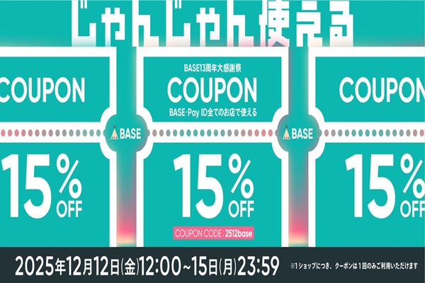 IYCオンラインショップBASE13周年大感謝祭で15%OFF(割引上限1,000円)クーポンが配布されます!※商品購入画…