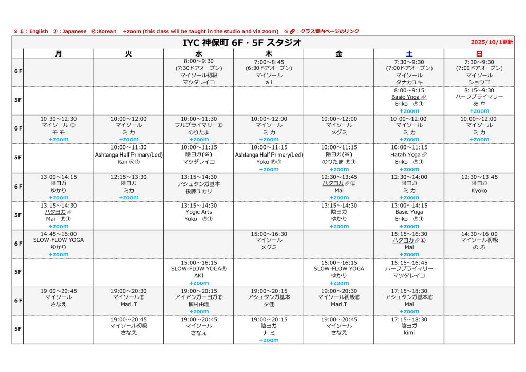 - 参加したいクラスのスケジュールを確認します。神保町スタジオでは、事前のご予約は必要ありません。