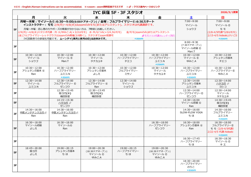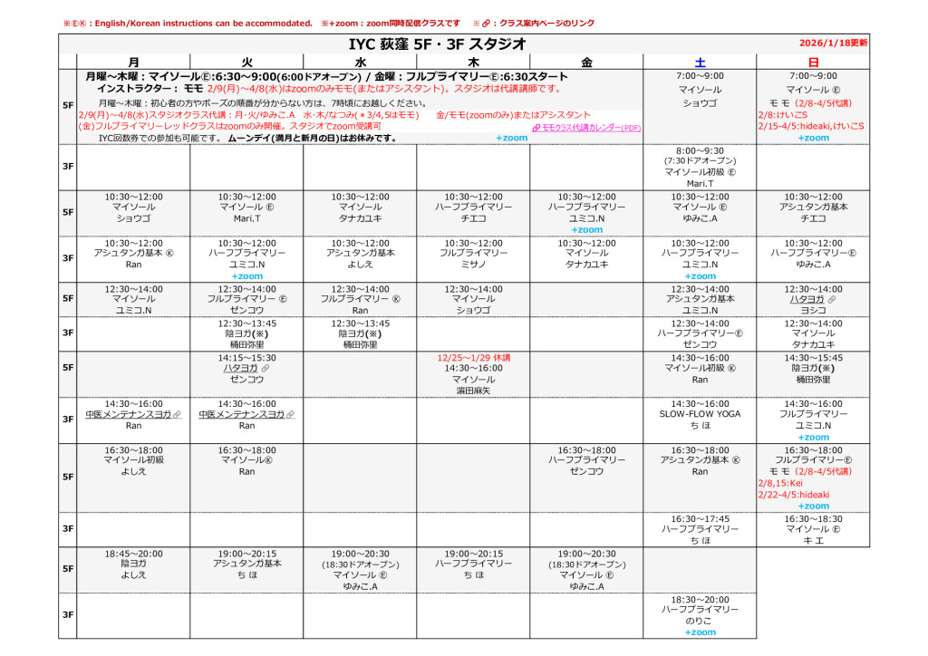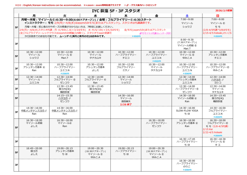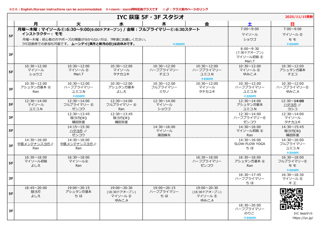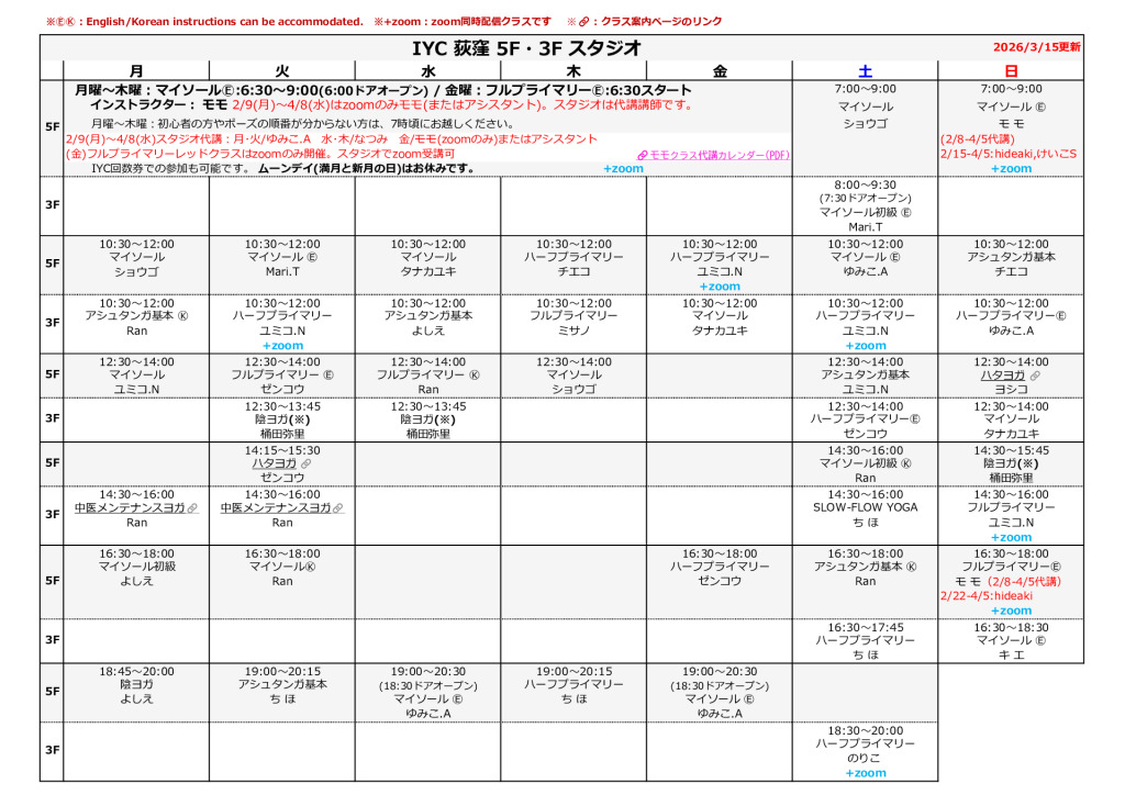 クラスの代講・休講・変更は、代講情報ページhttps://iyc.jp/daikou をご確認ください。